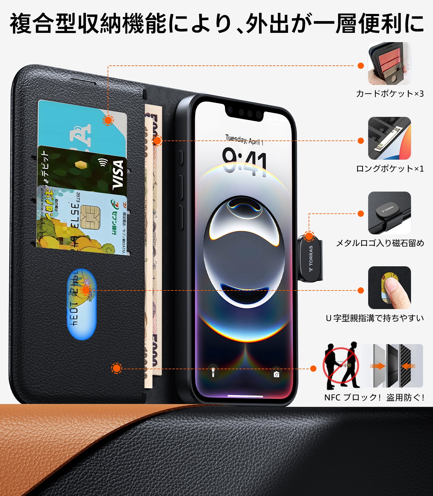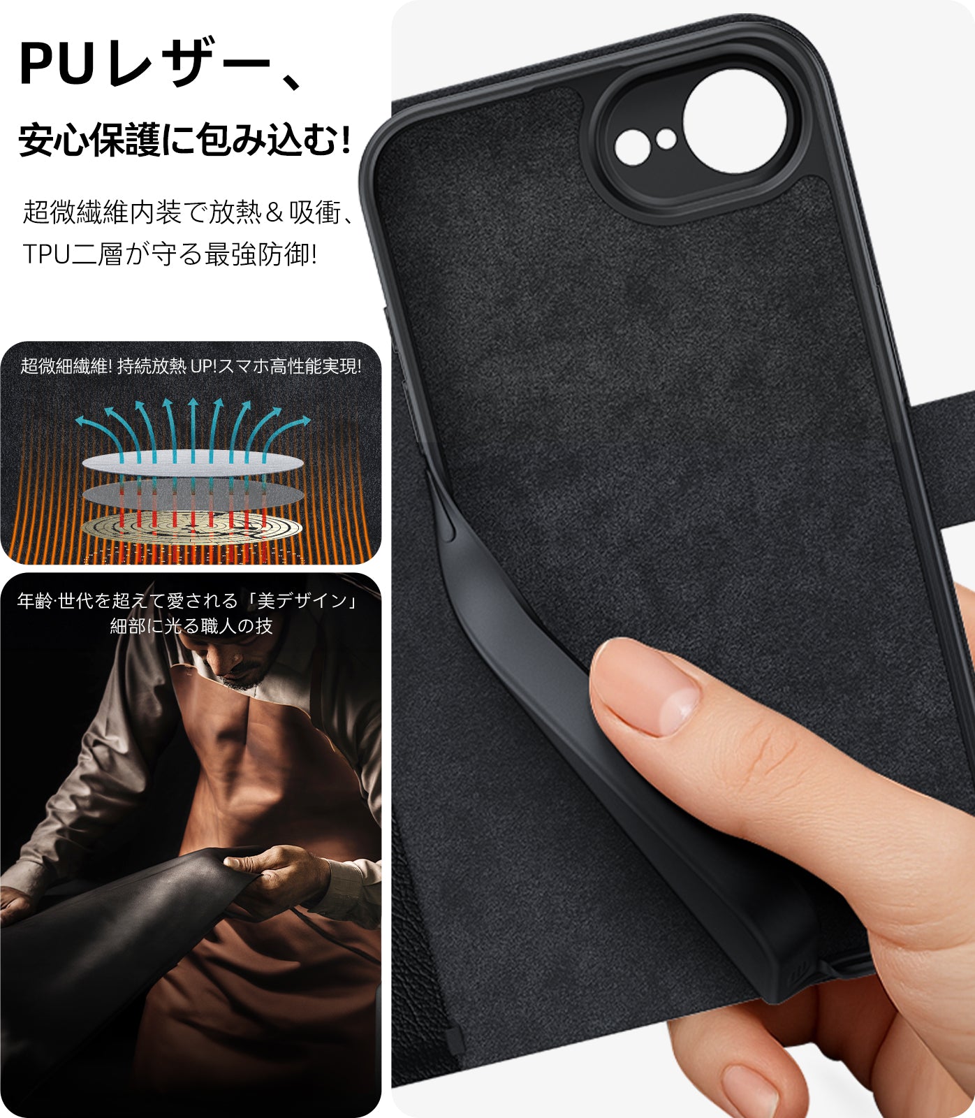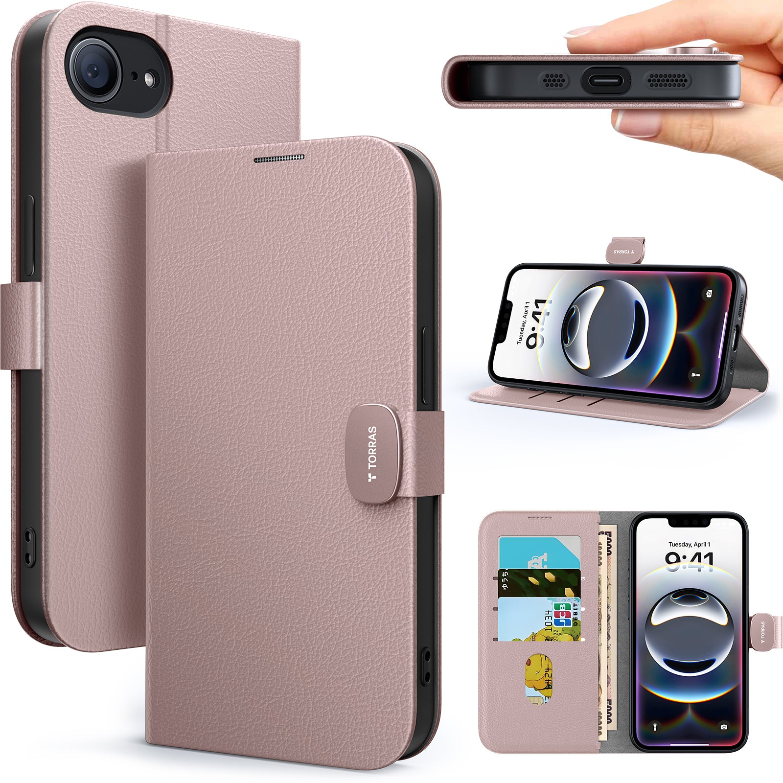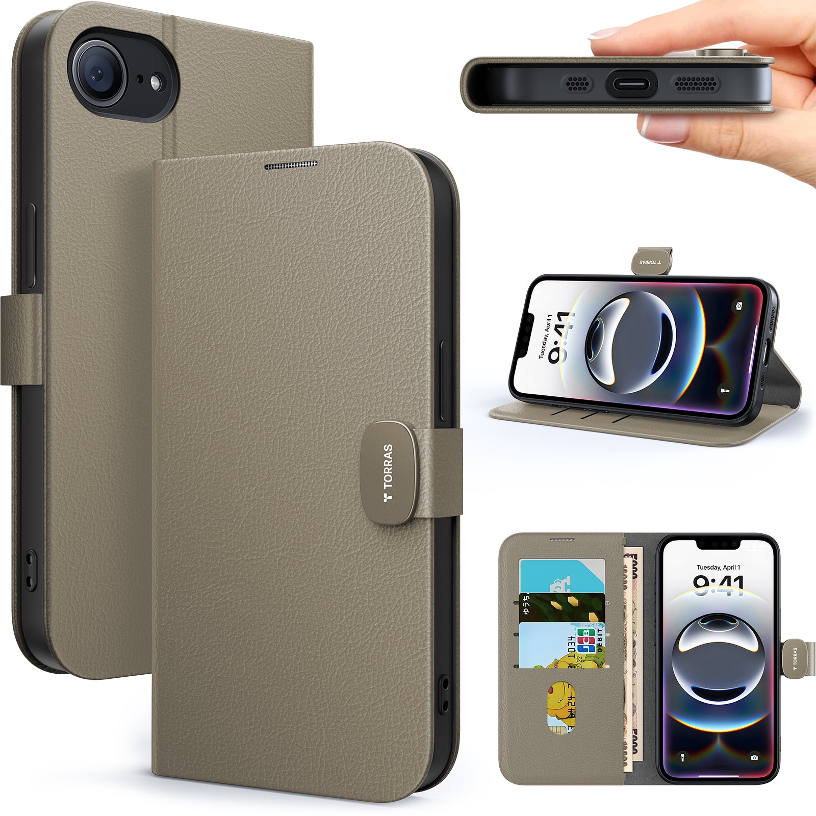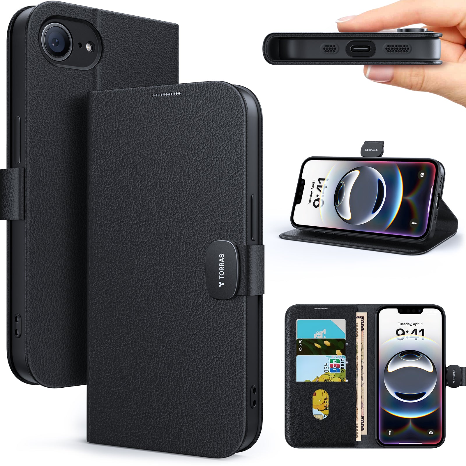 iPhone 16e Folio Case [3 Card Slots, US Military Standard Protection] with Stand and Shock Absorption
