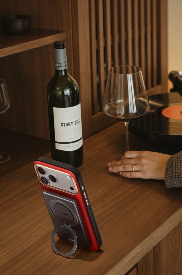 - ゼンマイ式スタンドで自由な角度調整と充電をサポート。