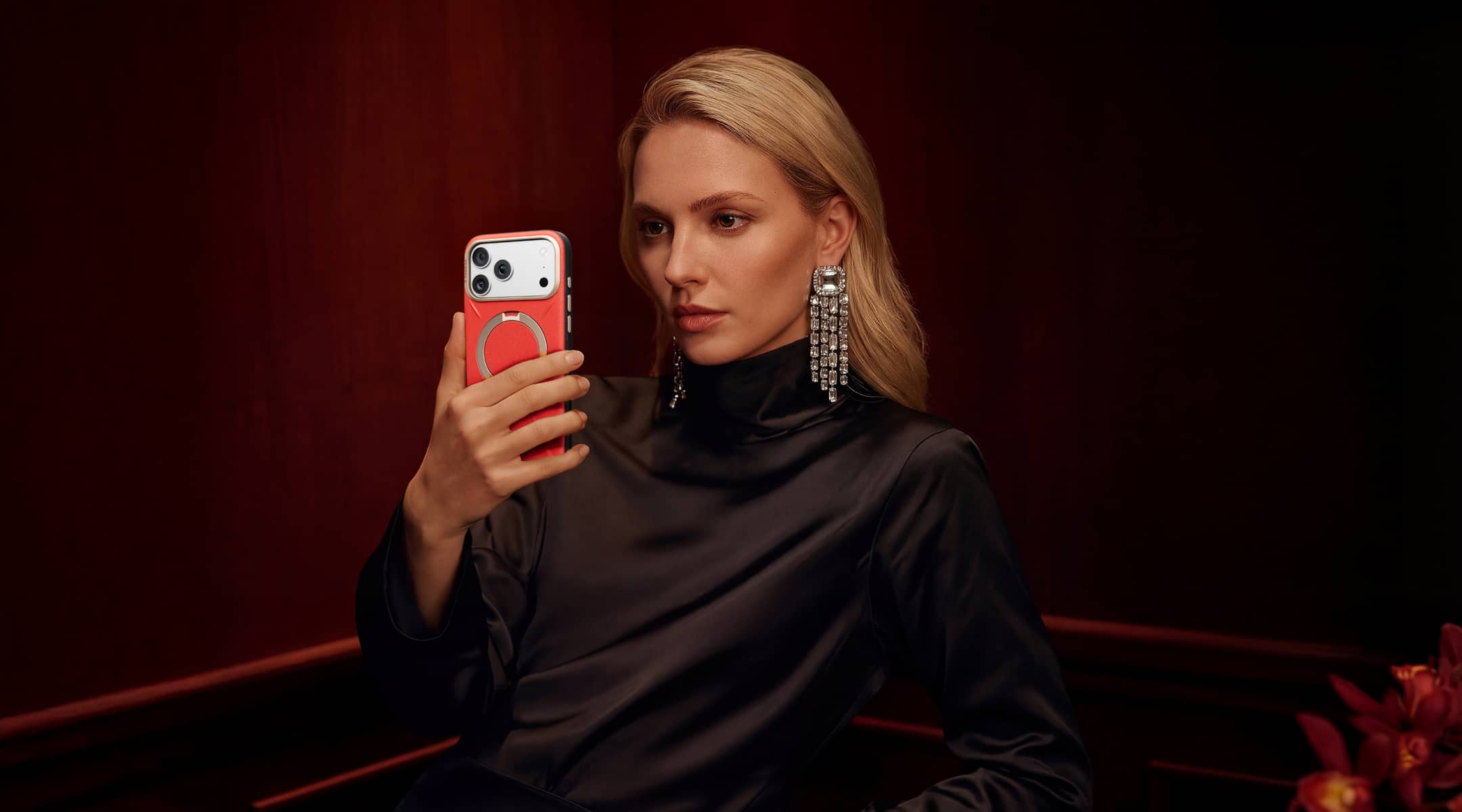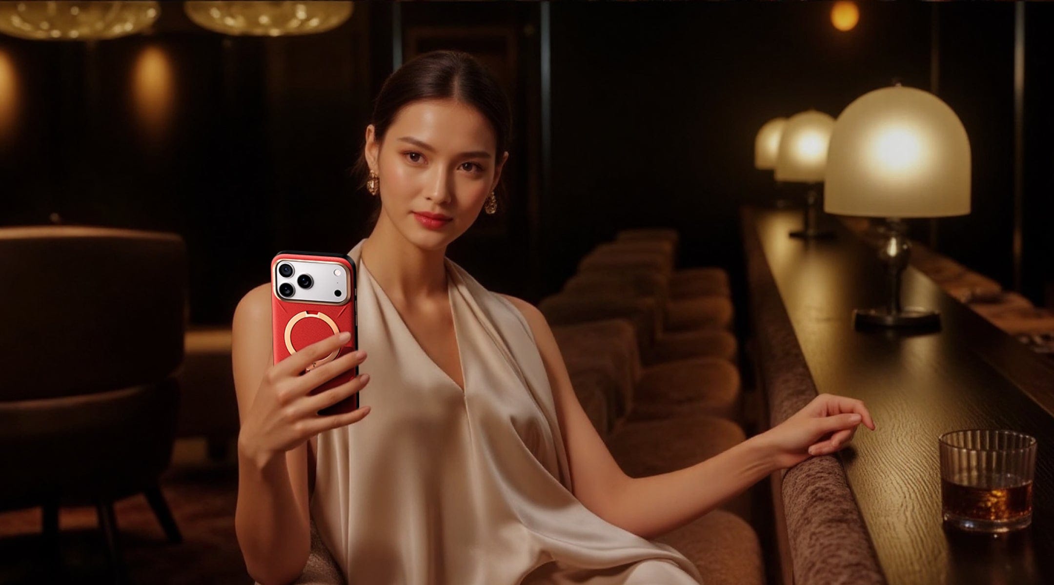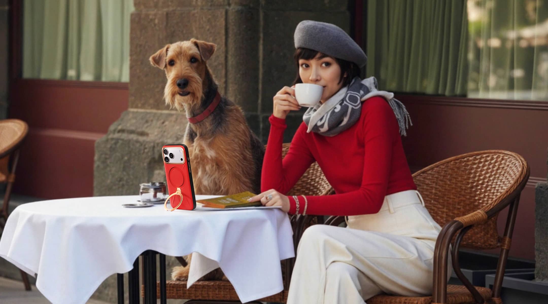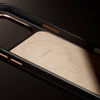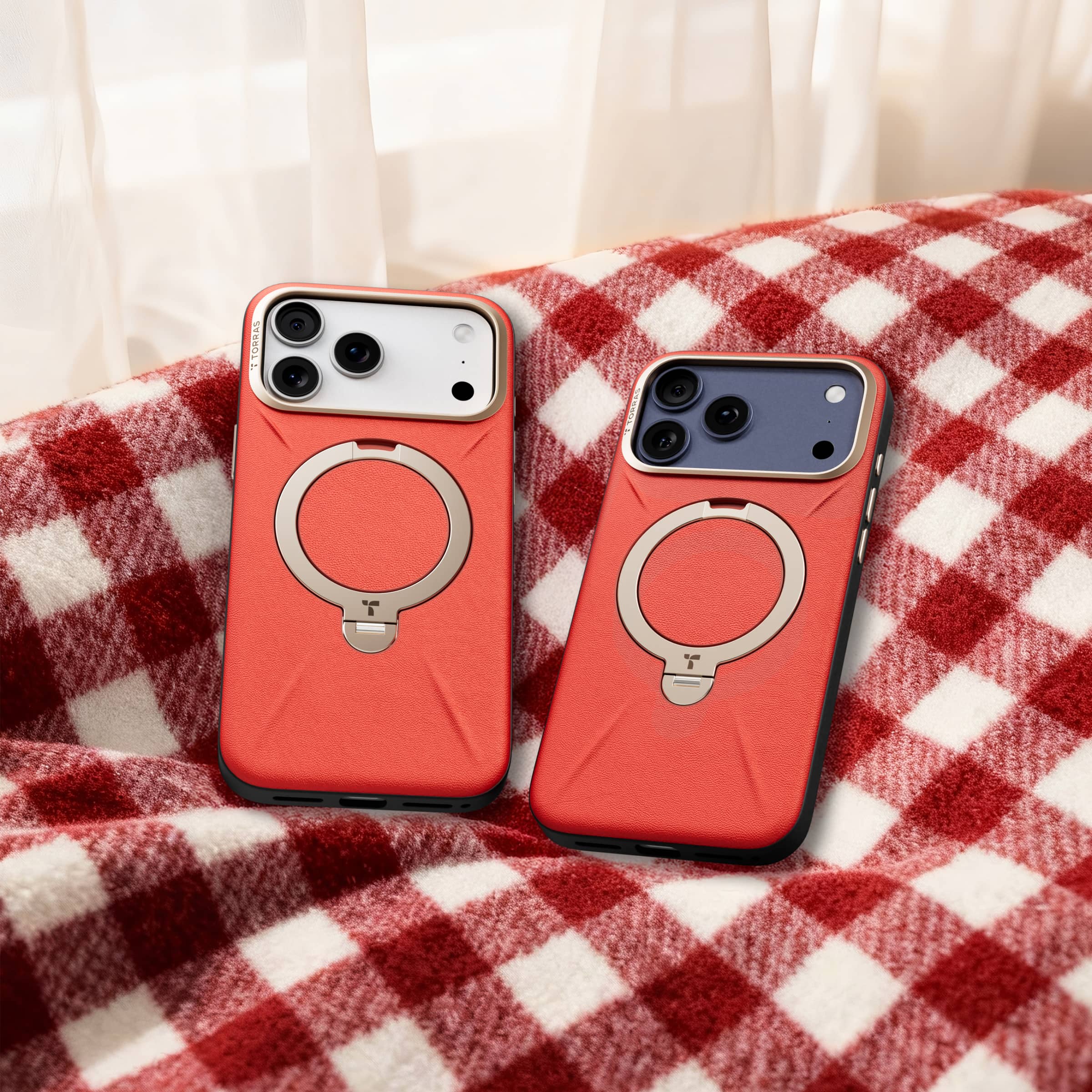 - 光沢アルミボタンと皮革風シリコンレザーで高級感を実現。