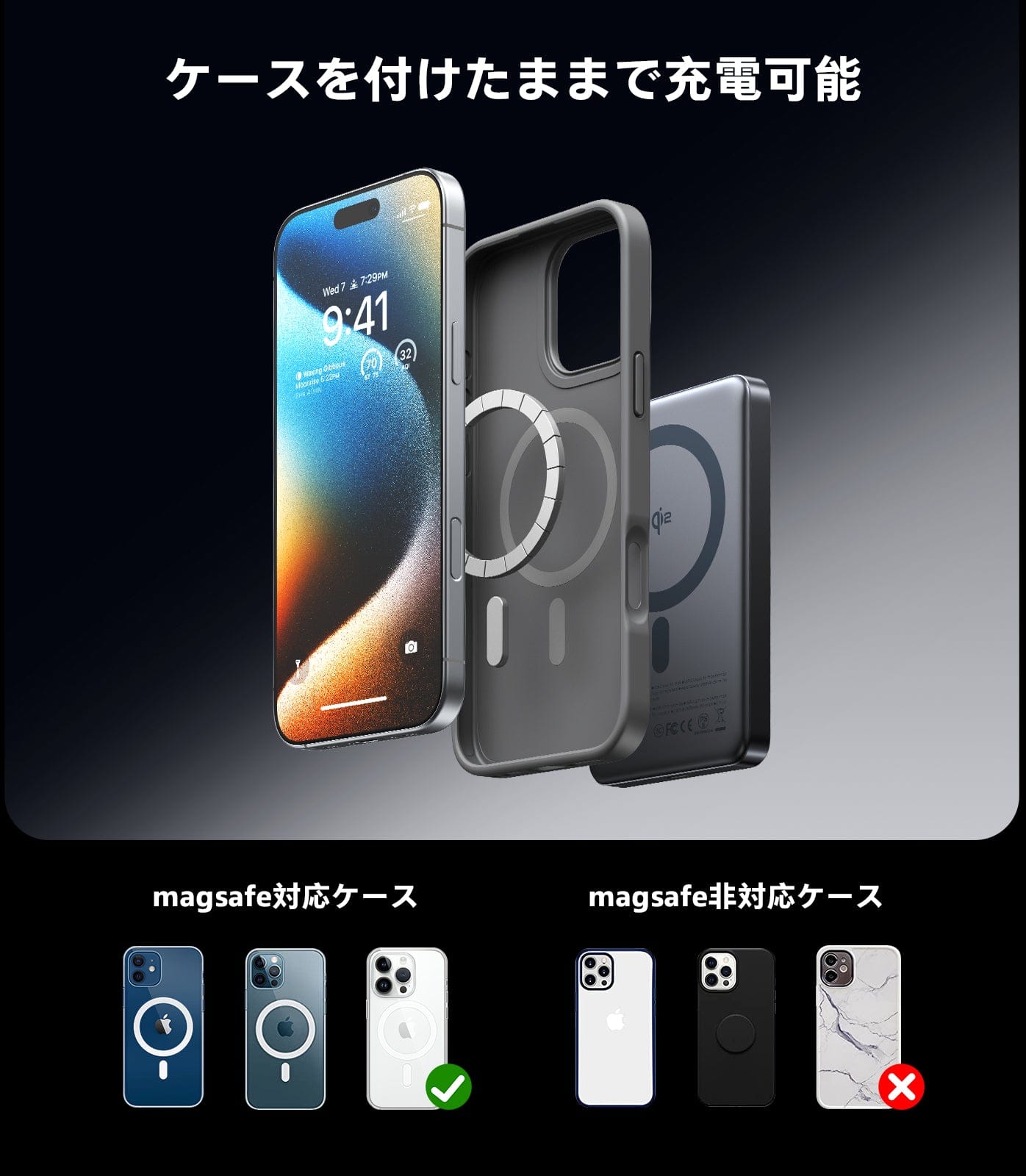 - ピタッと充電、絡まずスッキリ:マグネット式ワイヤレス充電対応のモバイルバッテリー。Qi2.2対応のiPhoneに、最大25W出力で3.3倍速くワイヤレス充電が可能です。