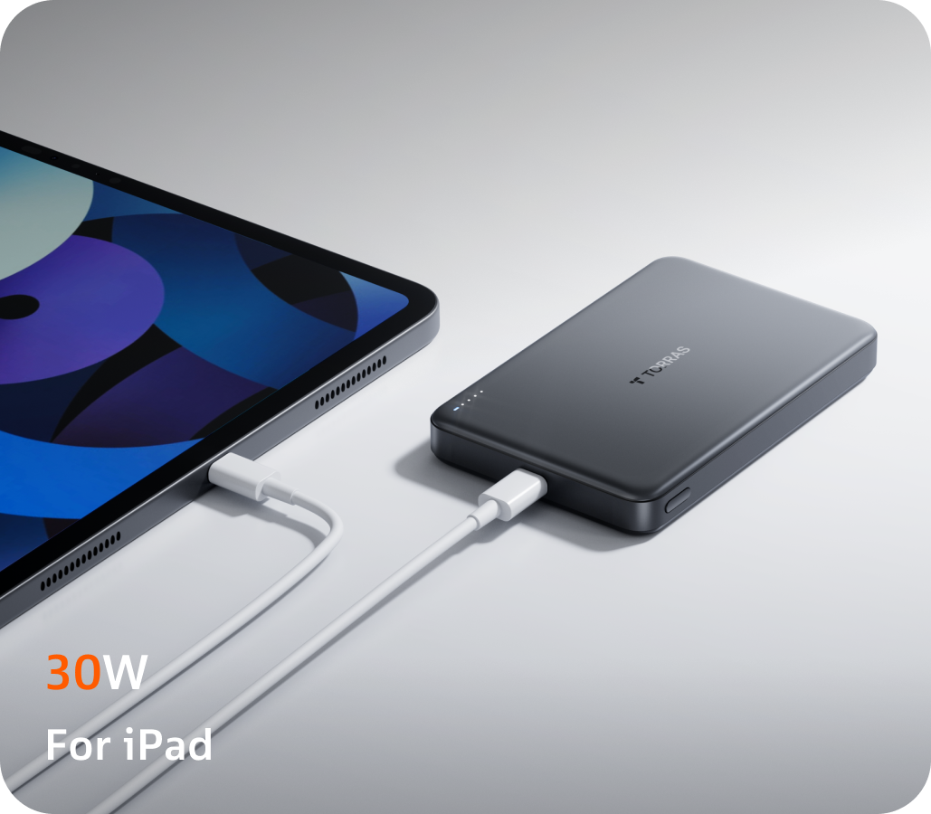 25 分で iPhone 15 Pro を 30% まで充電可能。30W USB-C ポートを搭載し、多機種の充電に対応。