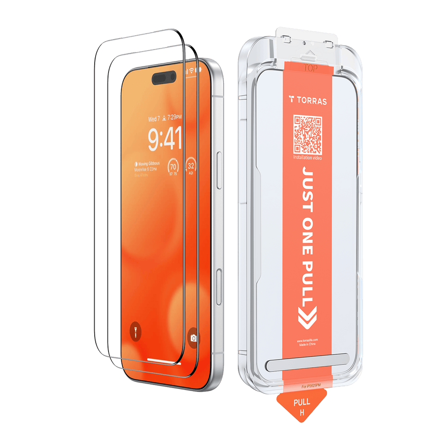 TORRAS独自開発の強化ガラスが、うっかり落とす衝撃や擦り傷から、あなたのスマホを守る最後の砦です。