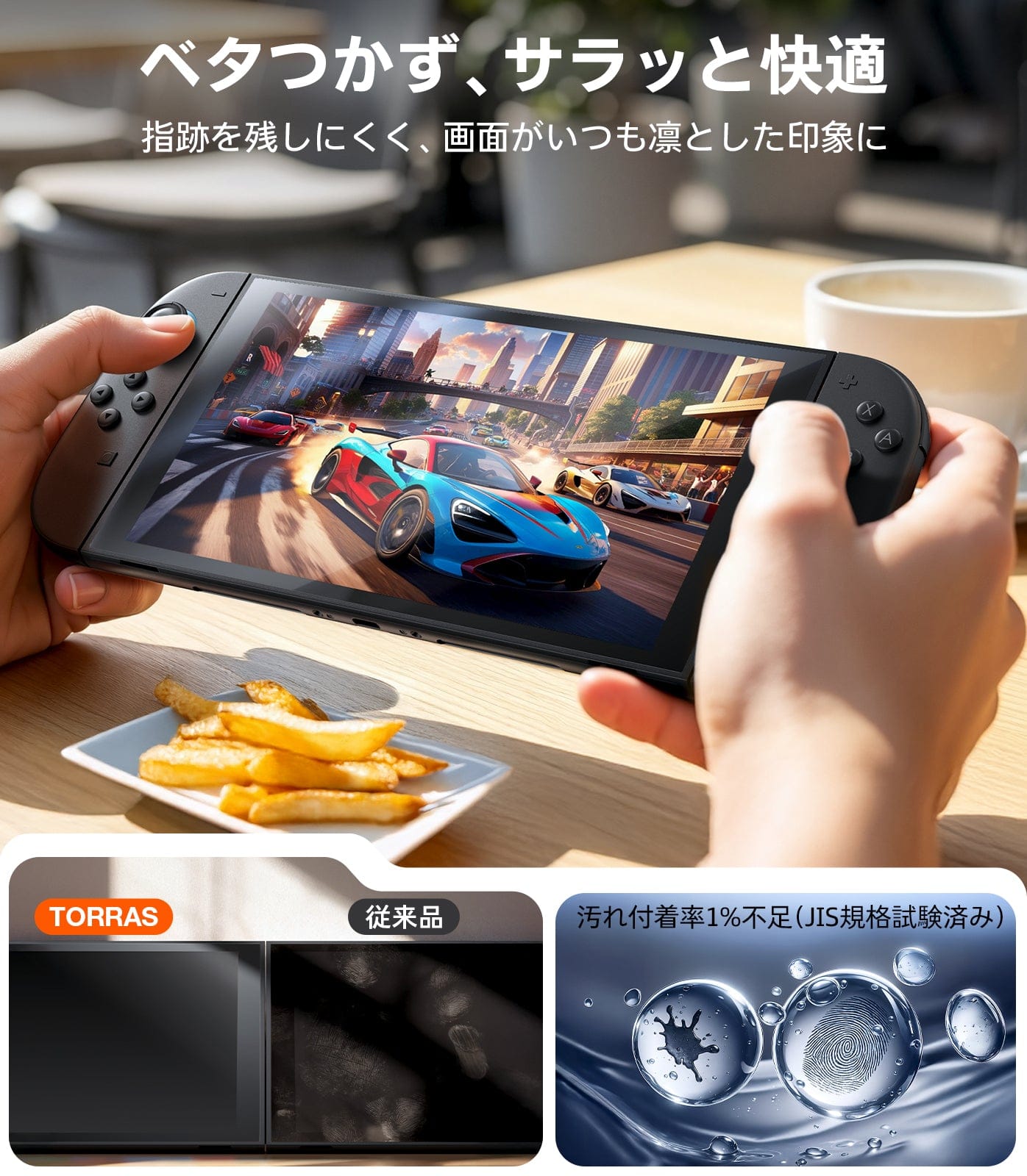 - 【指紋防止・操作感|複数人で使っても快適】触れるたび、なめらか。清潔感が続く画面。次世代の日本製AF(指紋防止)コーティングにより指紋や皮脂が付きにくく、付いても簡単に拭き取れます。複数人でのプレイやお子様の使用後でも、すぐにクリアな画面に。スワイプやタッチ操作の引っかかりを抑え、快適な操作感を保ちます。