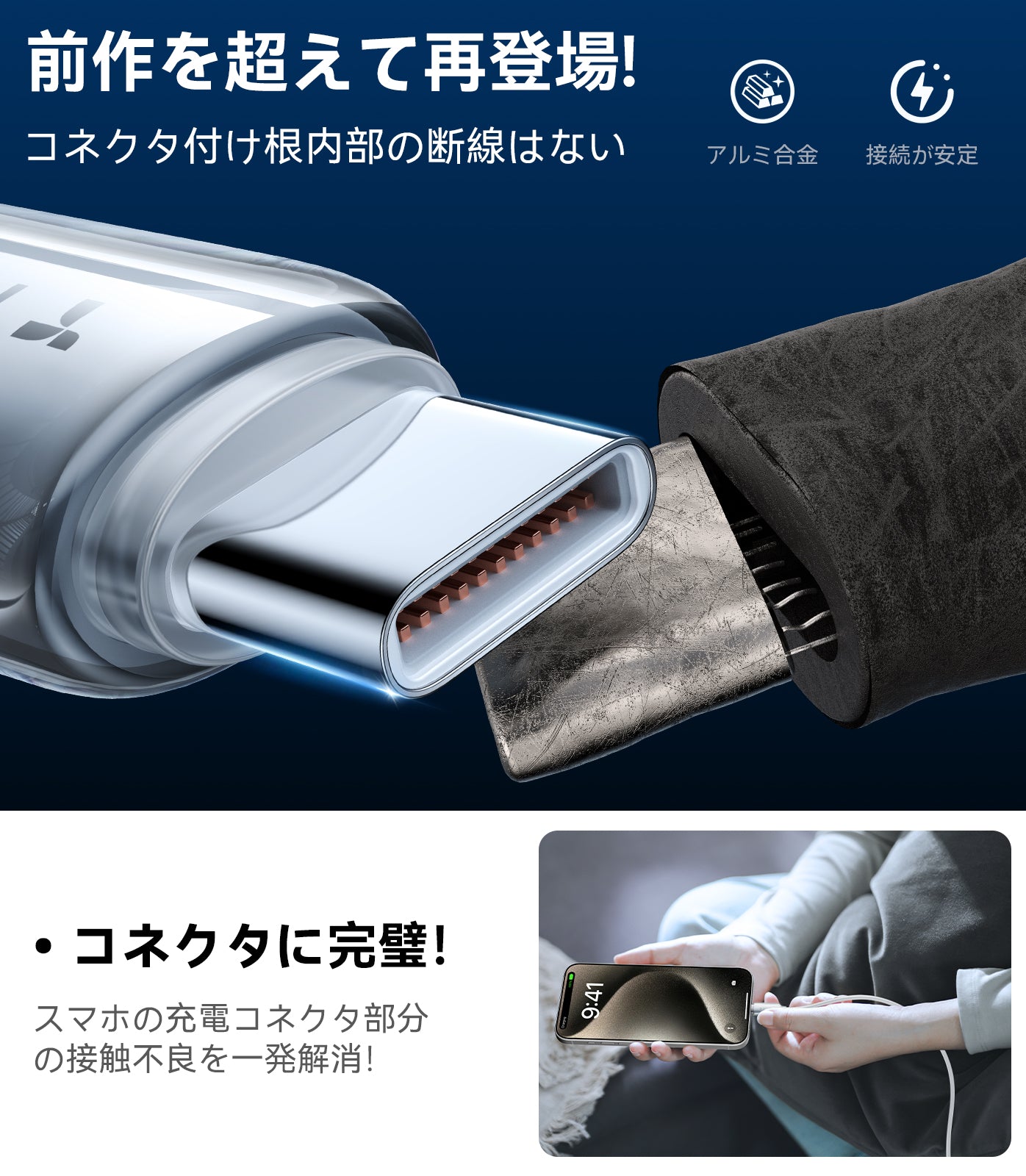- 二重保護・耐久性PVC被覆とナイロンファイバーで、10000回以上の折り曲げ試験に合格。耐久性が高く、長期間使用可能です。