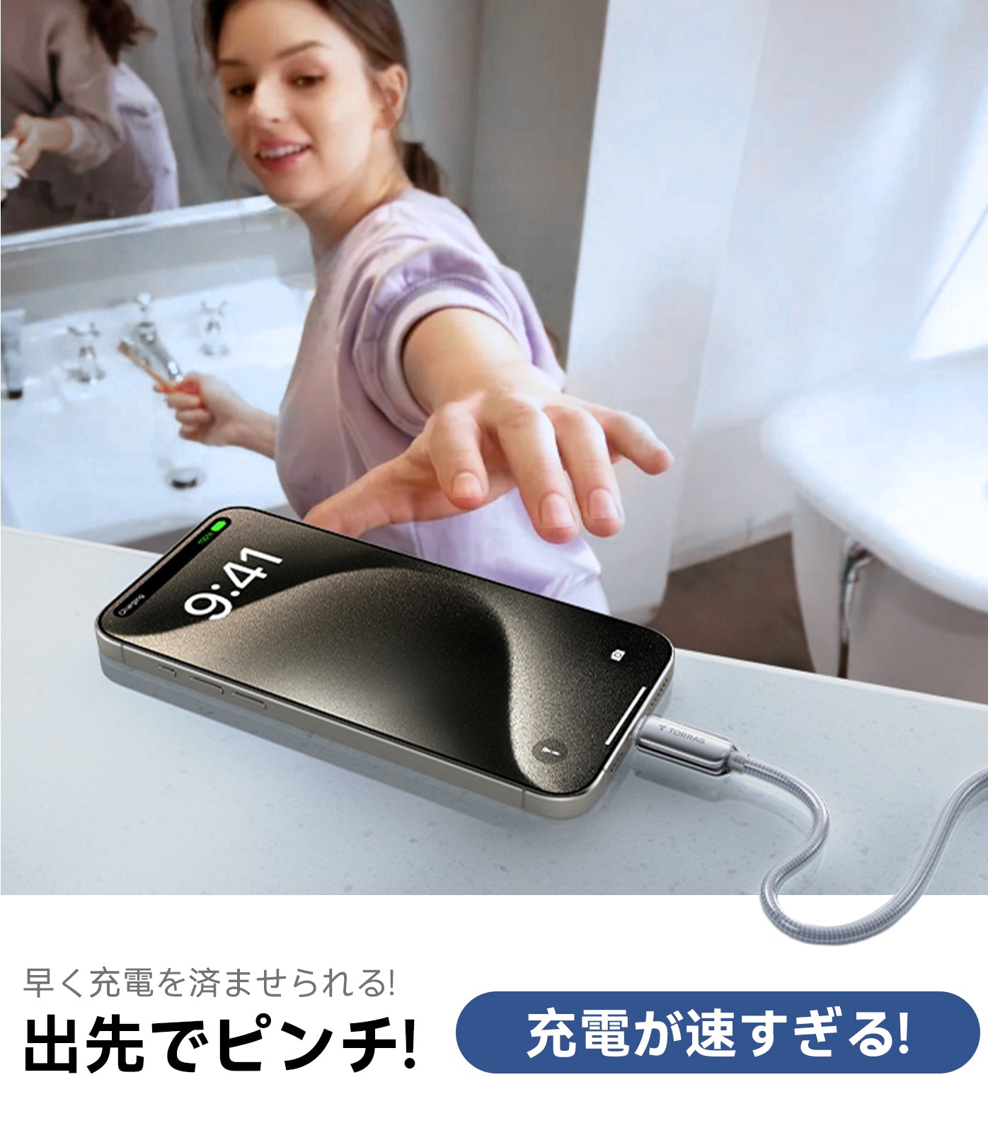 - 高速充電・データ転送最大60WのPD対応で、高速充電と最大480Mbpsのデータ転送が可能です。2GBのファイルを約33秒で転送できます。
