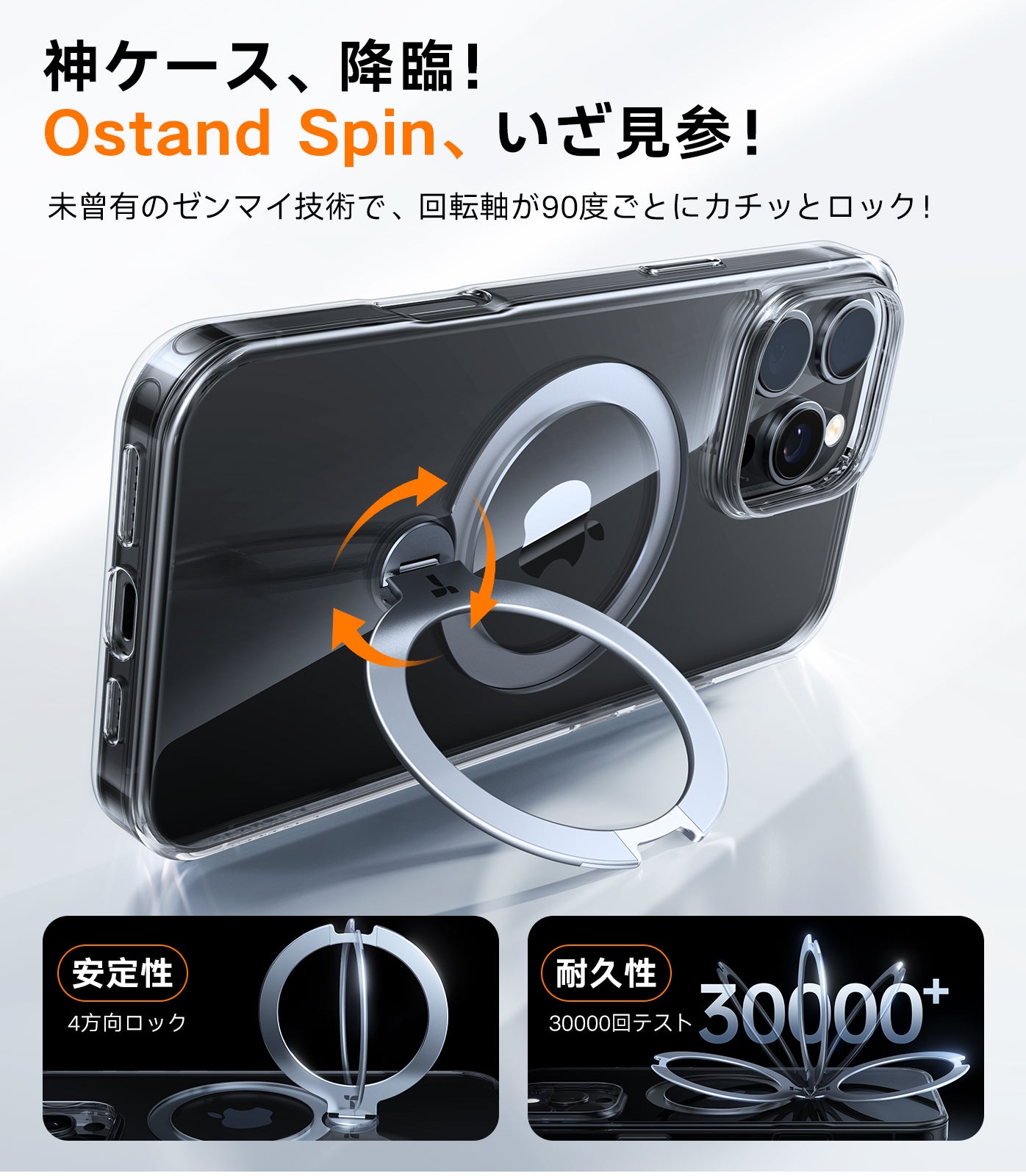 iPhone 16 Pro Max Ostand Spin ゼンマイ式スタンドケース