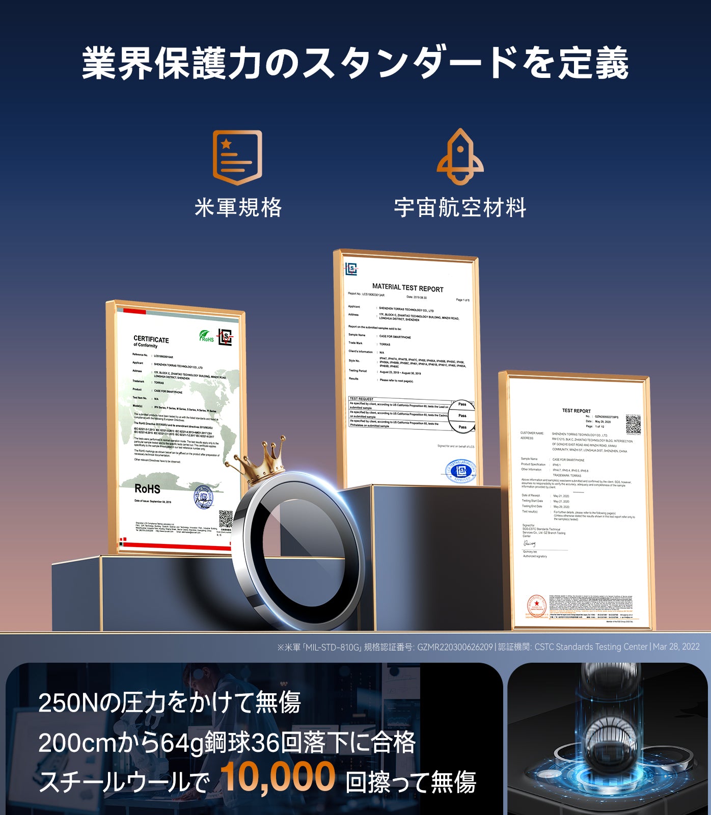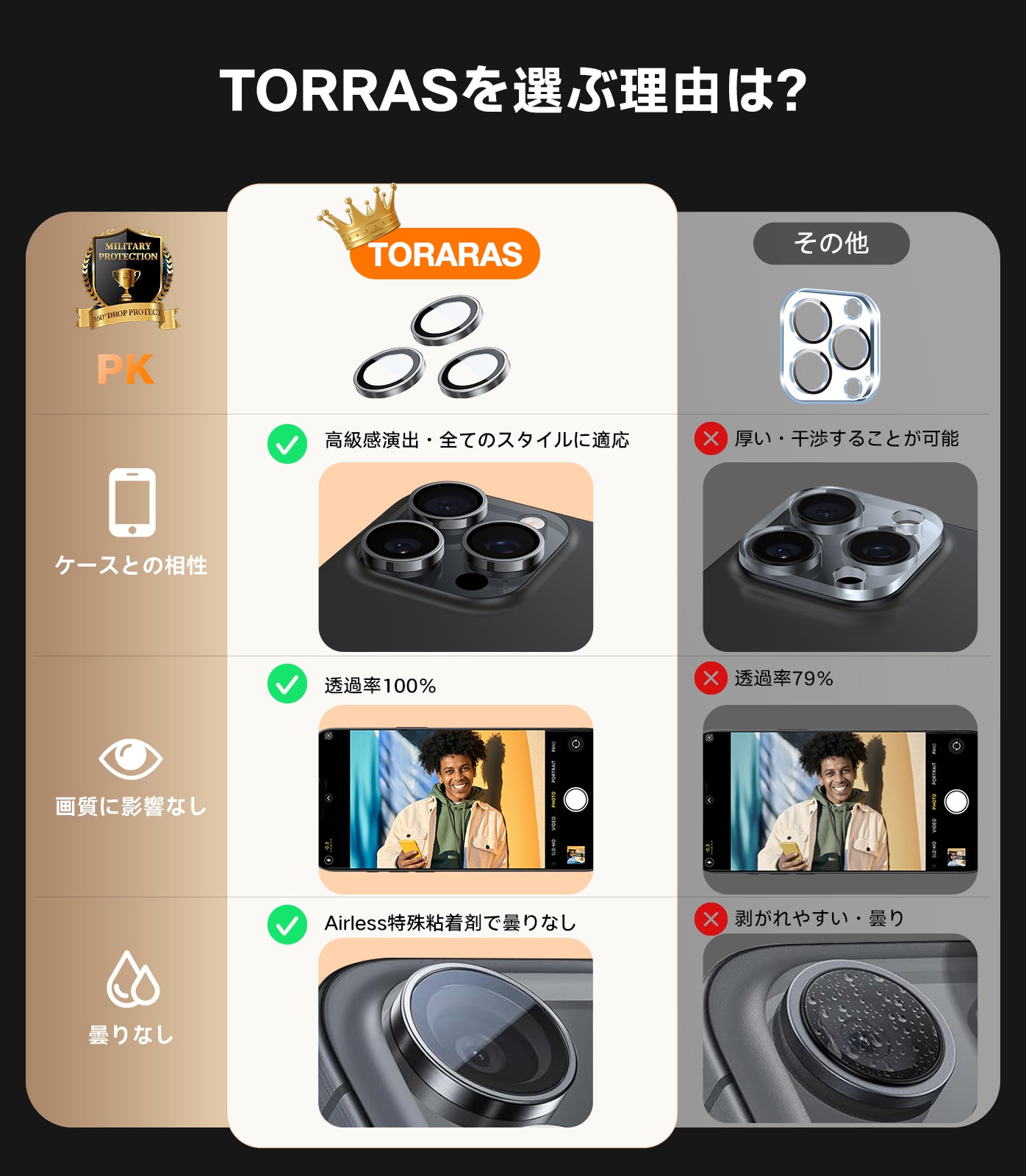 TORRASの高強度素材が割れないシールドを形成。 日常の摩擦や衝撃からレンズを守ります。