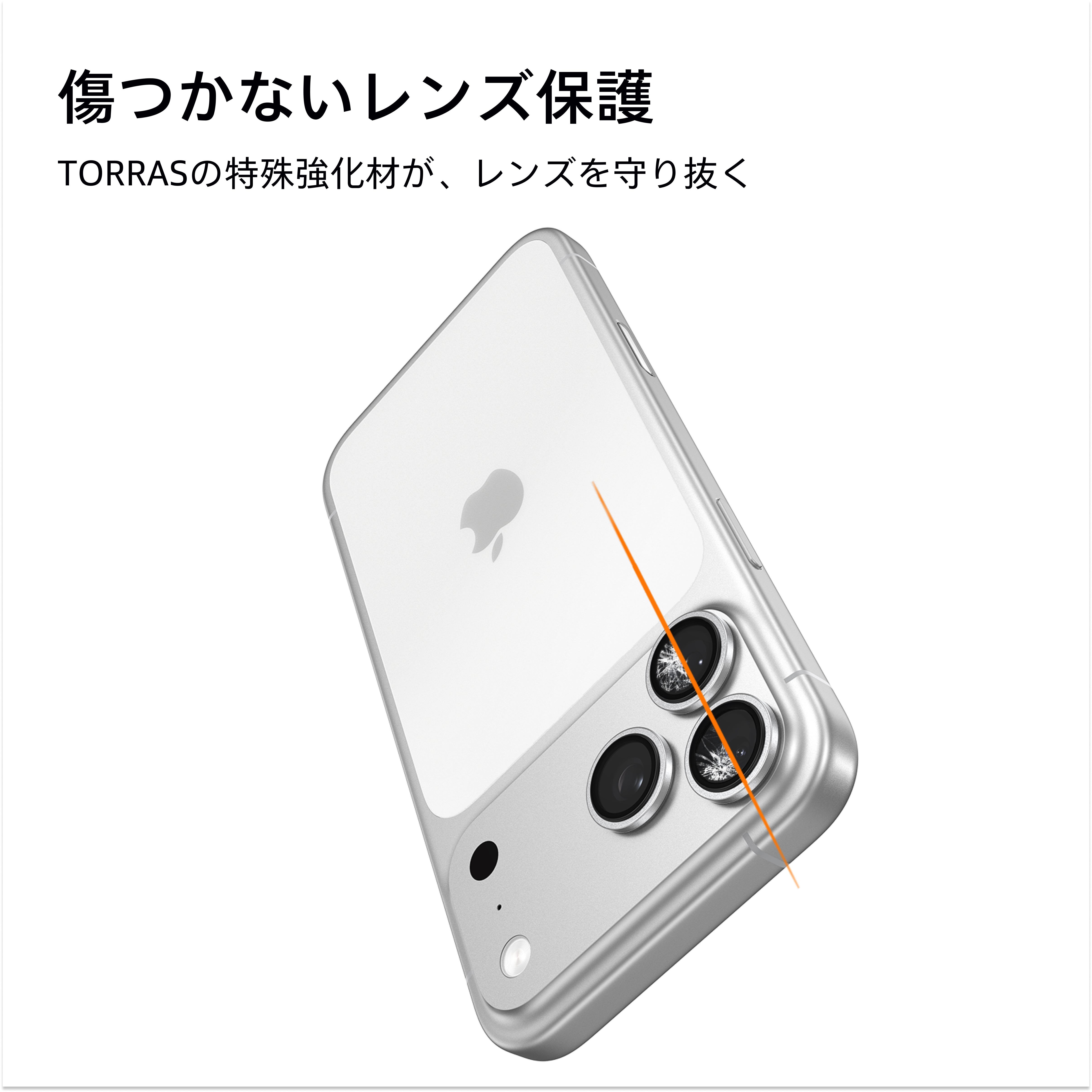 TORRASの高強度素材が割れないシールドを形成。 日常の摩擦や衝撃からレンズを守ります。
