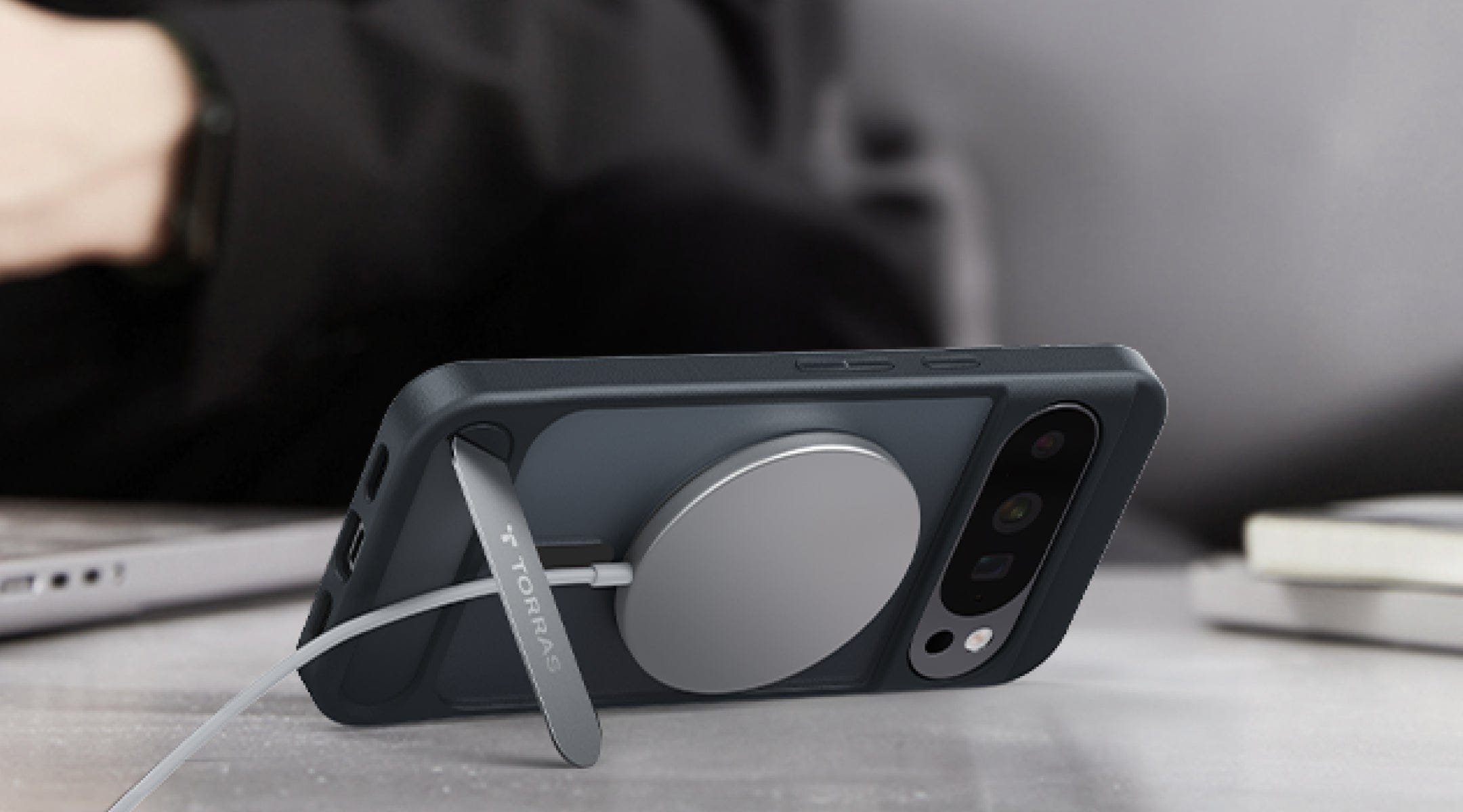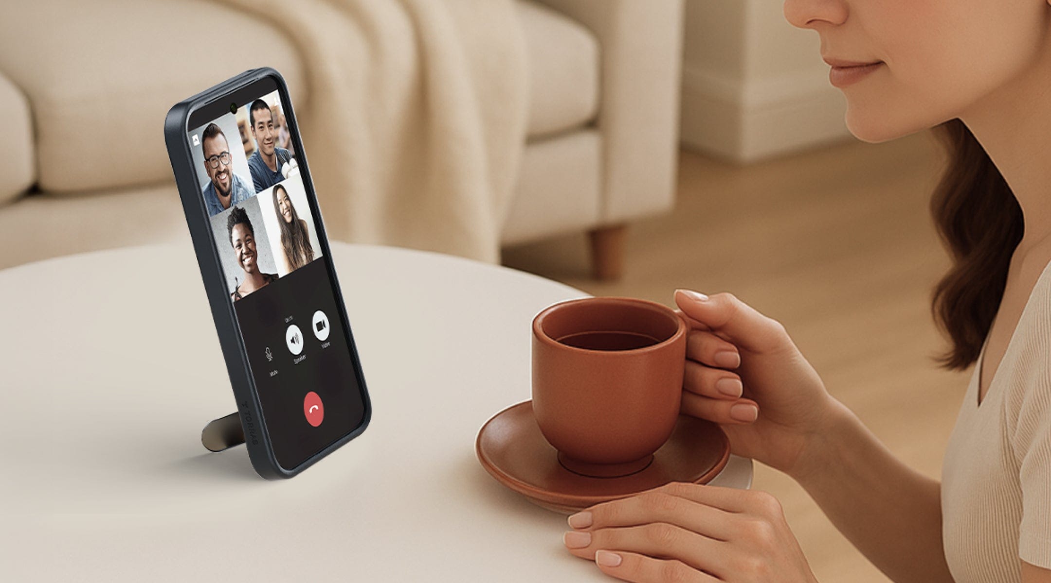 - ゼンマイ式スタンドで自由な角度調整と充電をサポート。