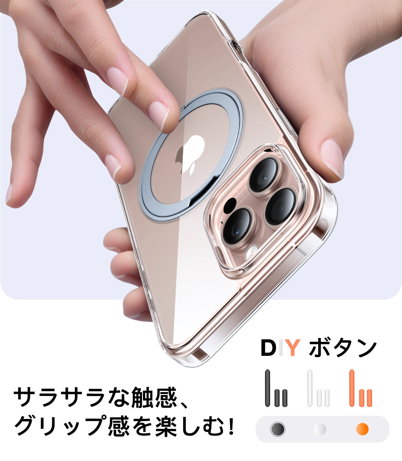 - 高品質TPU+PMMA素材が黄変を防止し、ダイヤモンドのような透明感でスマホの美しさをそのままキープ。