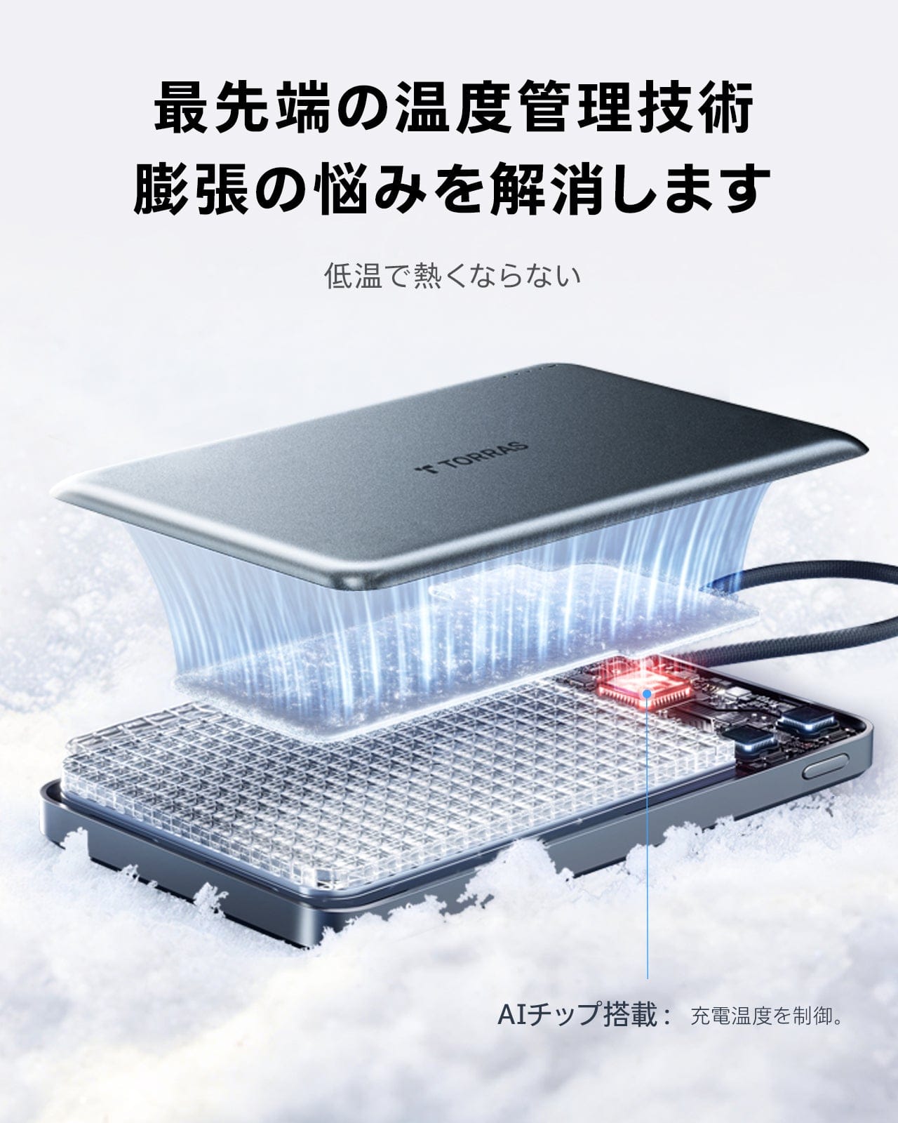 - グラフェン半導体とアルミニウムボディが発熱を抑え、安全な充電を実現します。