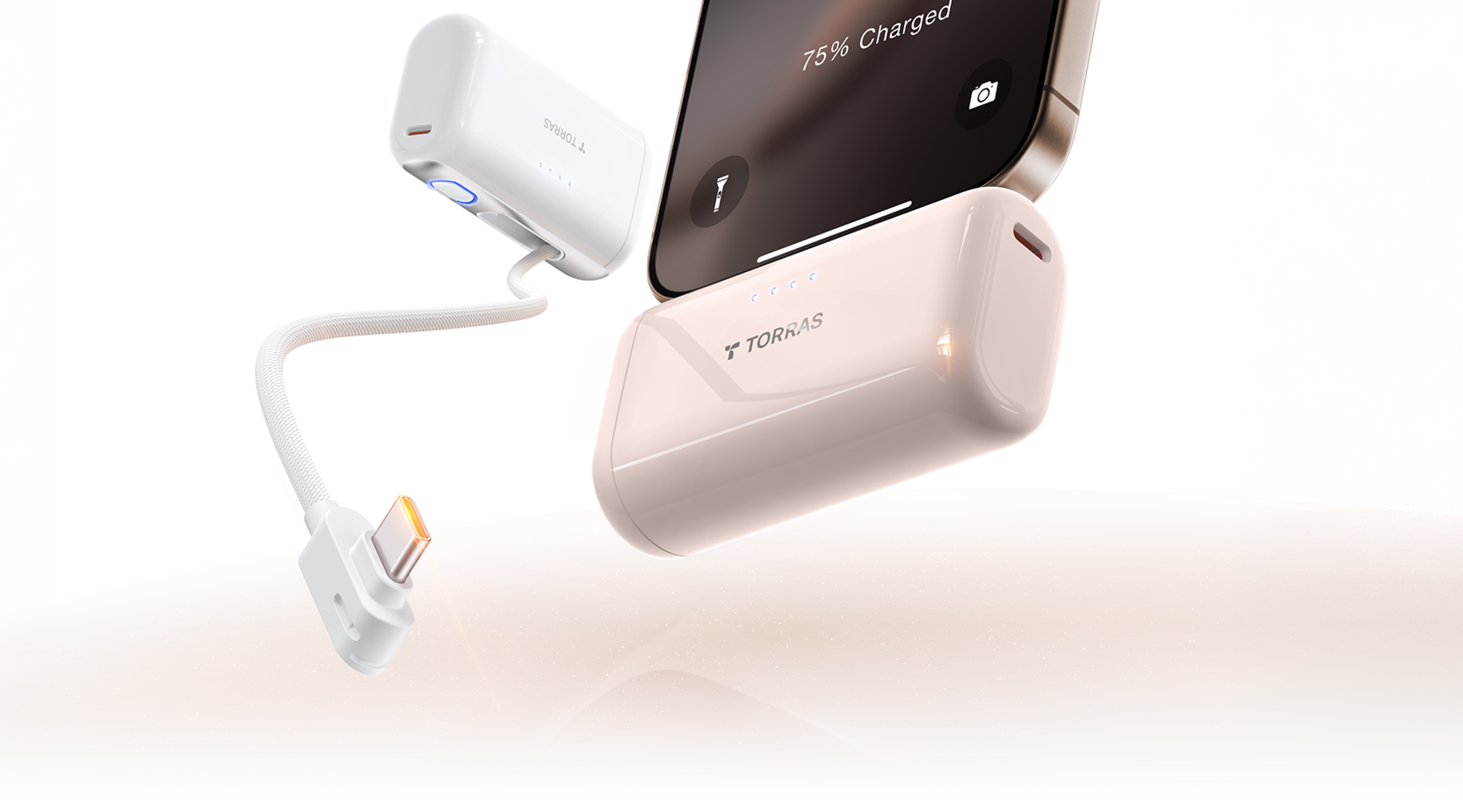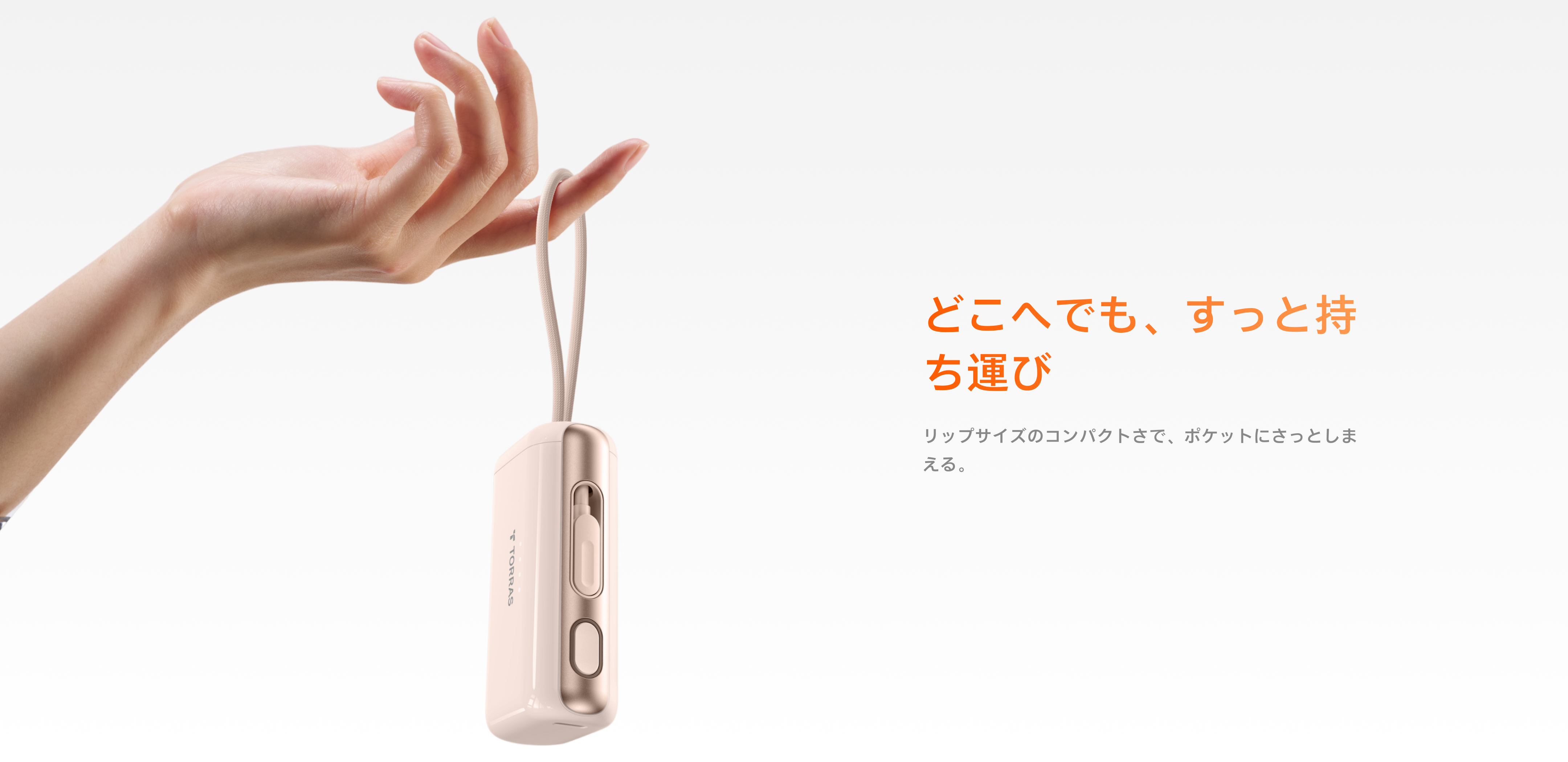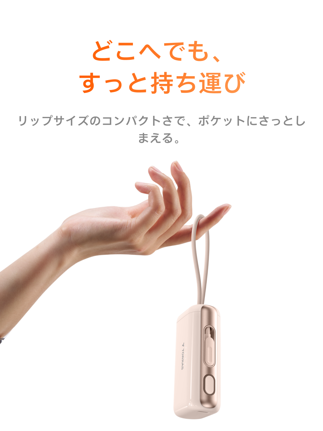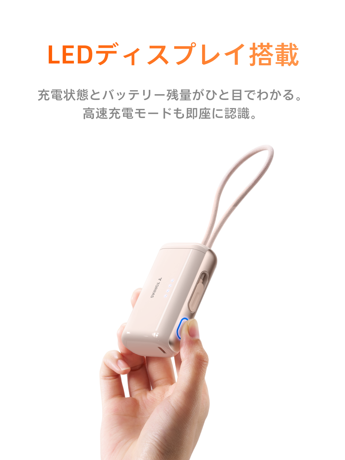 - 内蔵のType-Cケーブルで、スマホにすぐ接続して充電可能。本体も簡単に充電でき、ケーブル不要で手間が省けます。