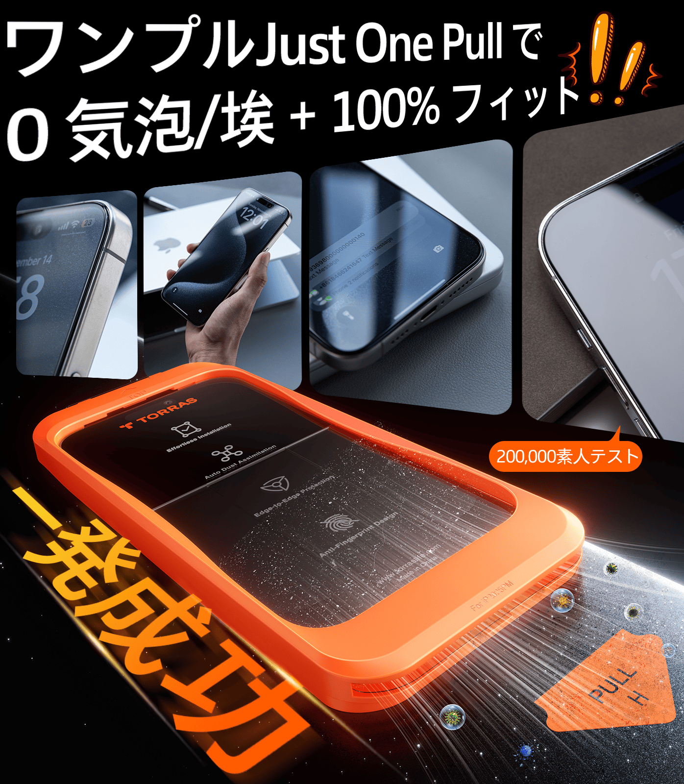 TORRAS フィルム For iPhone 15 ガラスフィルム iPhone 14 Pro 用 ガラスフィルム 航空宇宙ガラス 米軍規格 ツルツル 指紋防止 全面保護 ガイド枠 10倍強化極細縁 貼り付け簡単 9H越え 携帯落下/破損防止 飛散防止 2枚 いphone15/14Pro 用 保護フィルム GlassGo Ultra(ガラスゴー・ウルトラ)