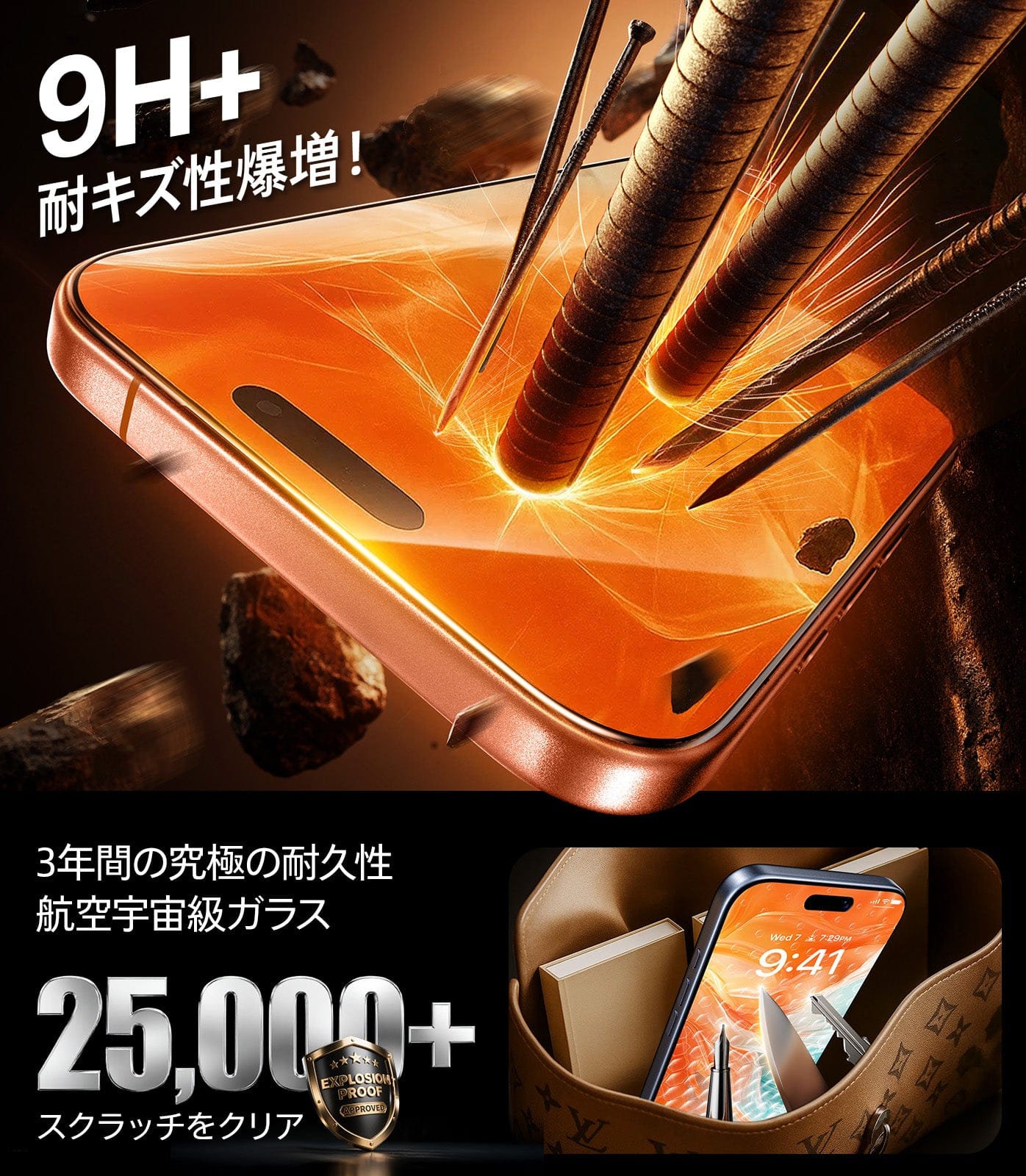 - 【見える最強防御!Air クッション搭載】 世界初の エアクッション 技術を搭載、100% 空気力学構造が 落下・衝突・摩擦を瞬時に分散吸収!米軍規格 4m耐落下防護性。 4m 高さから 100 回落下しても亀裂を生じにくい。-20℃~60℃の温度変化や湿度 95% 環境下でも材質劣化せず、3段階衝撃緩和メカニズム:まず初期衝撃吸収:スマホ枠の上下エアバッグが最初の衝撃波を緩衝、次にエネルギー分散:エアクッション層が衝撃力を周囲に拡散、最後に最終防護:強化フレームが残留エネルギーをブロック。満員電車でバッグから滑落、デスクワーク中のうっかり滑り、お子様の嬉しいはずみでの誤落下はもちろん、山道ハイキングでのポケットからの飛び出し、サイクリング中の激しい振動… どんなアクシデントでも、フチを1.44mm わずかに高く設計。 特にアウトドアでの使用時は、石や地面との接触による衝撃もしっかり吸収し、冒険中も安心してスマホを使えます。目で見える全方位保護で、いつも安心感をパックしています。(対応機種iPhone 16 pro )