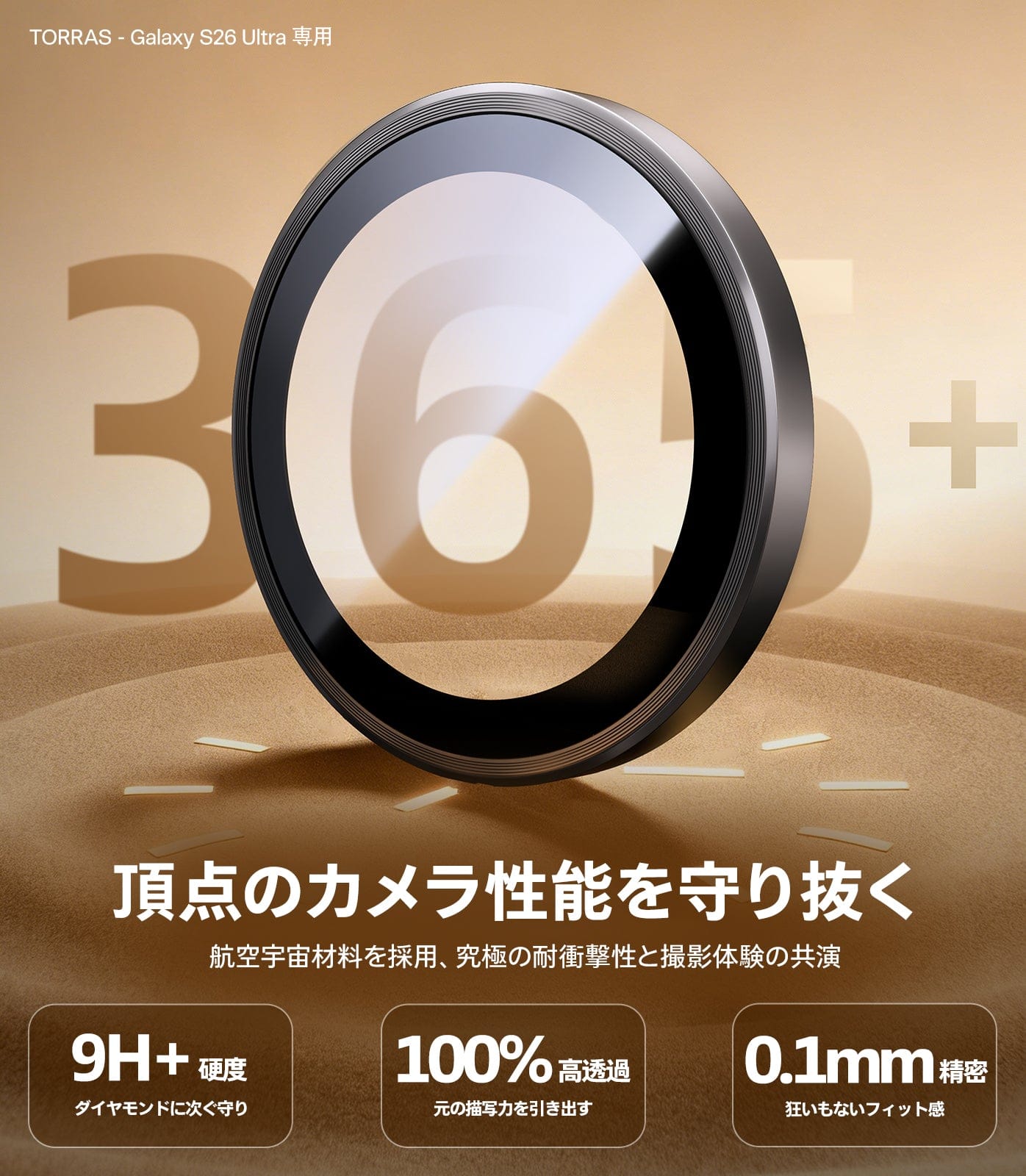 TORRAS For Galaxy S26 Ultra カメラ保護 【撮影もデザインそのまま・曇らない】 レンズカバー アンチグレア 露出オーバー防止 キズ防止 米軍 MIL 規格 宇宙航空素材 黒縁取り 1セット カメラカバー ブラック ZeroLens
