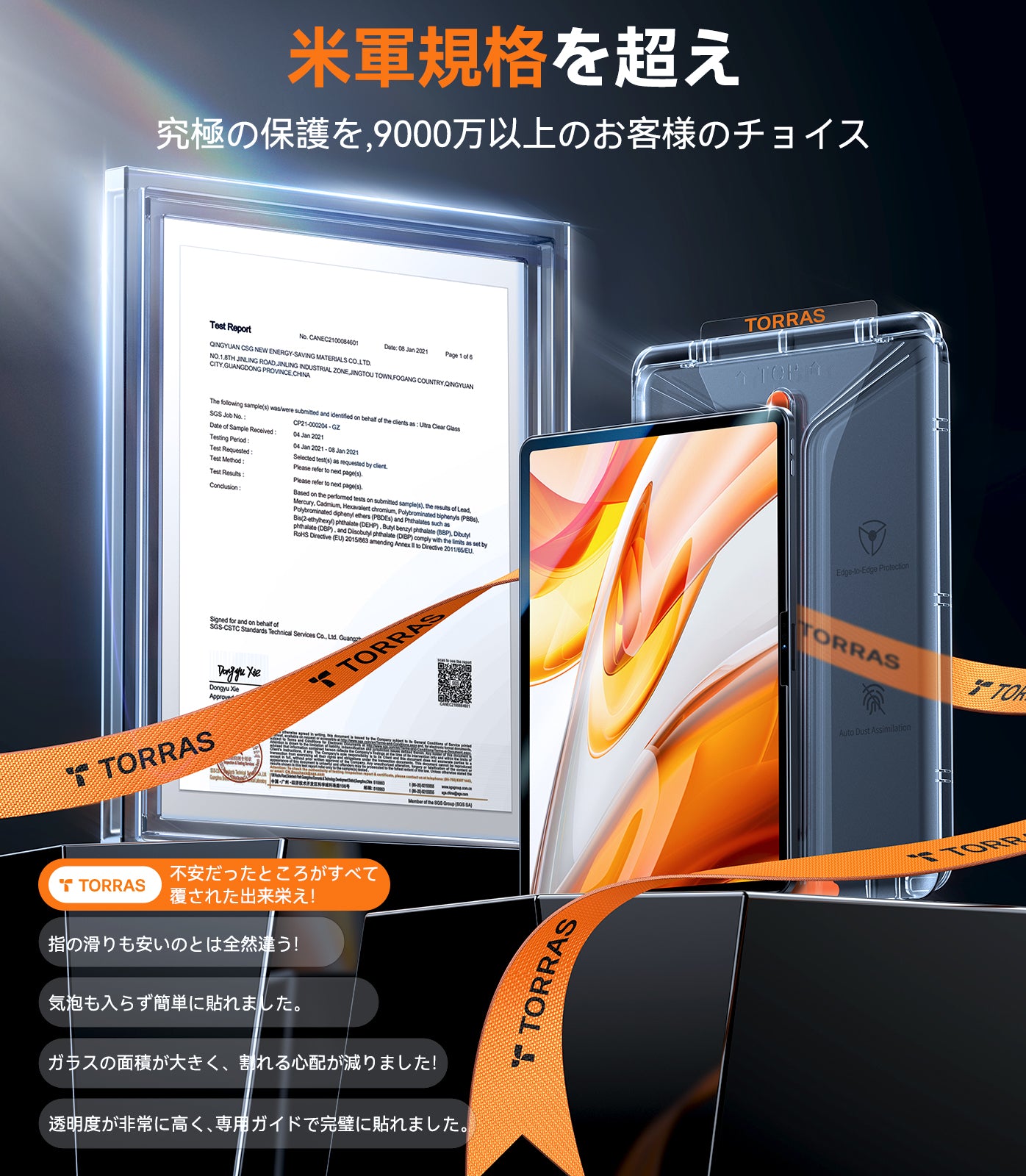 - TORRASの第四世代ガイド枠により、iPad インチフィルムを引っ張るだけで自動的に貼り付け完了